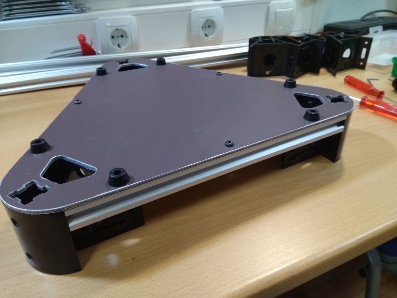 1. Рельсовые направляющие. Они обеспечивают безлюфтовое перемещение каретки и дополнительную жесткость конструкции. Идеальное решение для Станка с Дельта кинематикой. Единственным их недостатком является их цена.