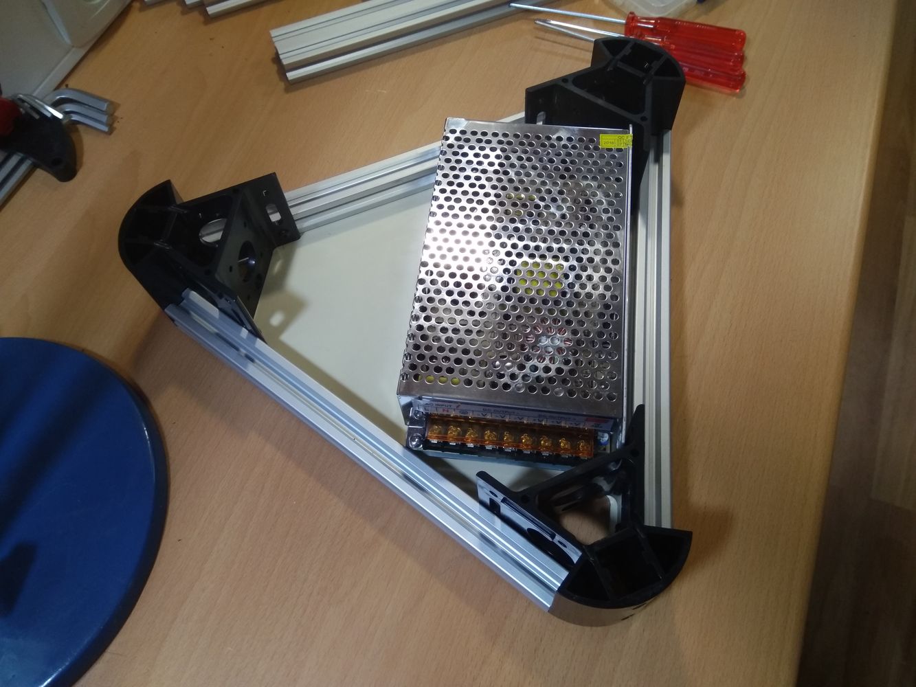 Использование двухярусной конструкции несущего основания с утяжелением в виде сбалансированного размещения блока питания Станка.